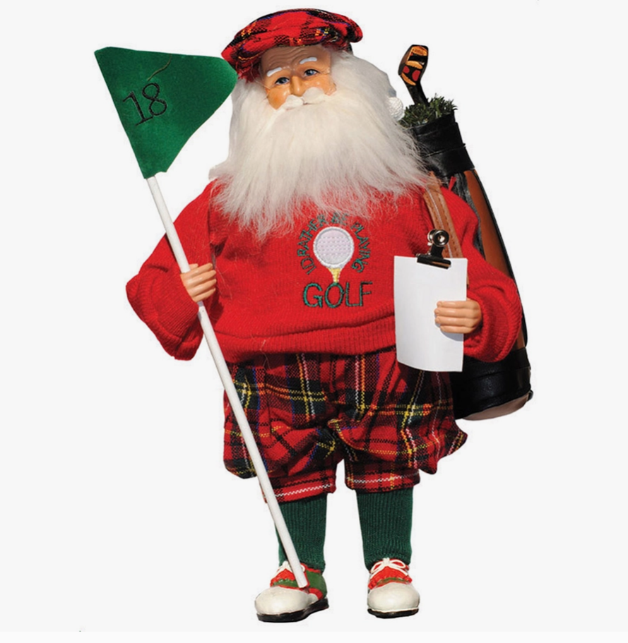 Believe it or not, it is quite difficult to play golf in the snow. This 15" I'd Rather Be Playing Golf Santa daydreams at work about hitting the greens down south. Sporting a red sweater (embroidered with obvious intent), plaid pants and hat, this Santa is ready to keep score this holiday season!