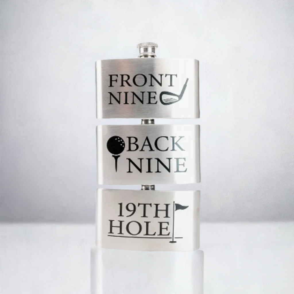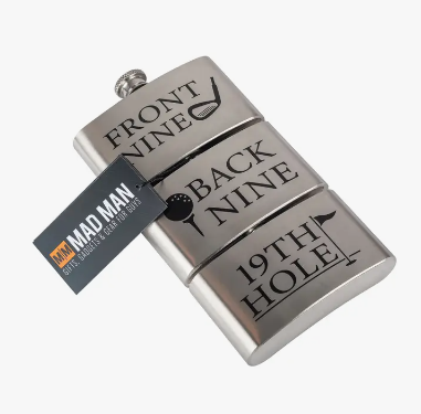The 19th Hole is a great way to end your round of golf! The 19th Hole Golfers Flask is the perfect addition to your golf or barware collection. Featuring 3 separate reservoirs, you can now enjoy your favorite spirits on the front 9, back 9, and lastly, at the 19th hole!