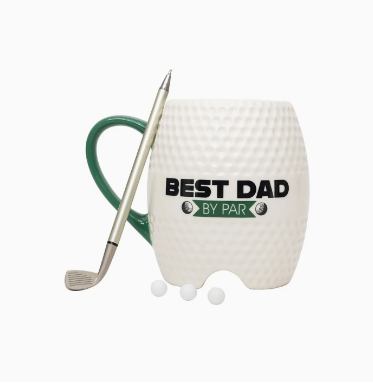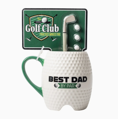 Practice makes par! The Golf Club Gift Set includes a 16 oz. ceramic mug with coordinating putter-shaped pen and 3 golf balls. Hand wash only.