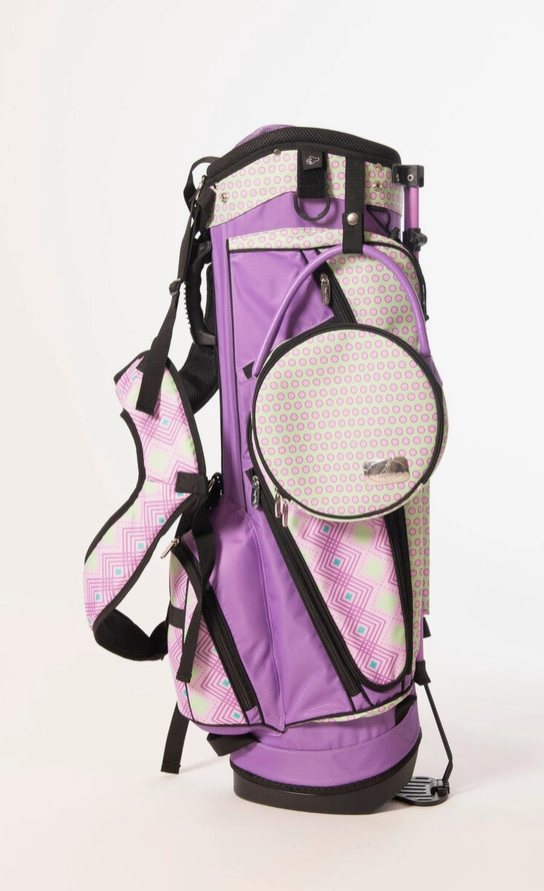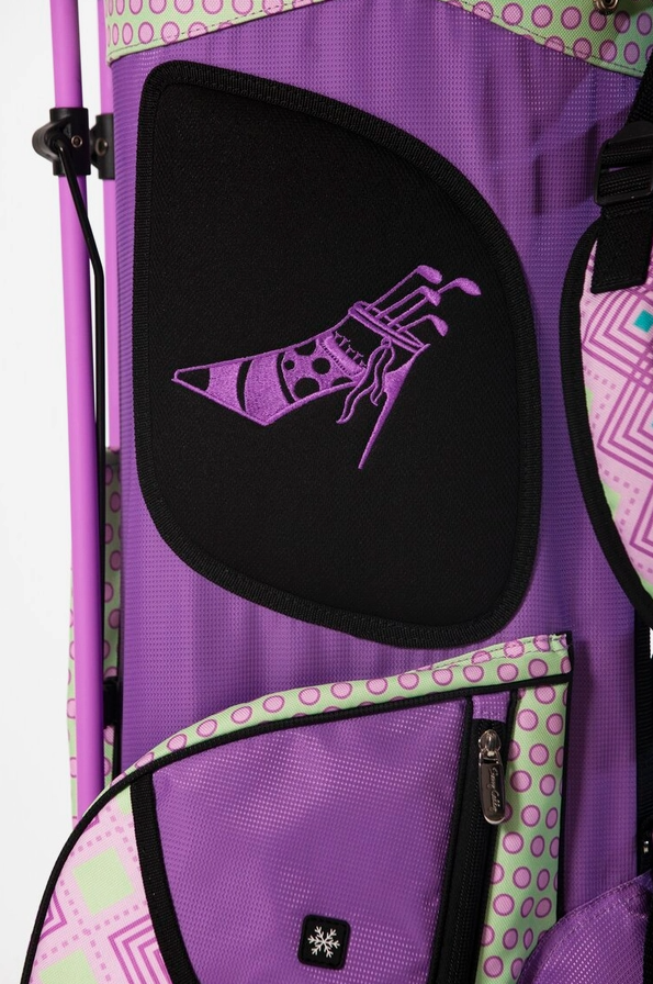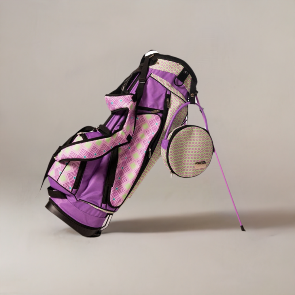 The Concord Collection is a latest purple design. It’s energetic geometric prints are sure to give you extra power when you smack that golf ball down the fairway. Includes 6 full length dividers (each divider can hold 2-3 clubs), hidden velvet-lined valuables pouch, cooler pocket, glove patch, integrated tee holders & mesh ball pockets.