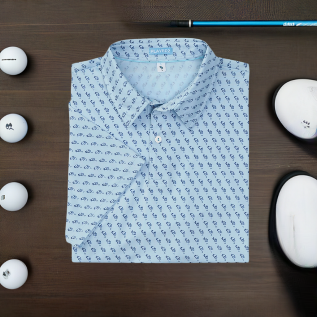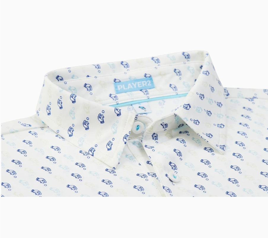 Listen…there comes a time when you get to the first tee and you just hosel rocket your drive into the abyss…but then you hear your best buddy say ‘Drop Another” and you send that beautiful round ball into the middle of the fairway. Well, do the same with this stylish new polo with our step and repeat logo pattern. With a classic fit, 4-way stretch and our Brrr Triple Effect Cooling Technology, you will be the coolest looking guy that breaks 100.