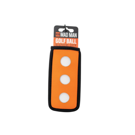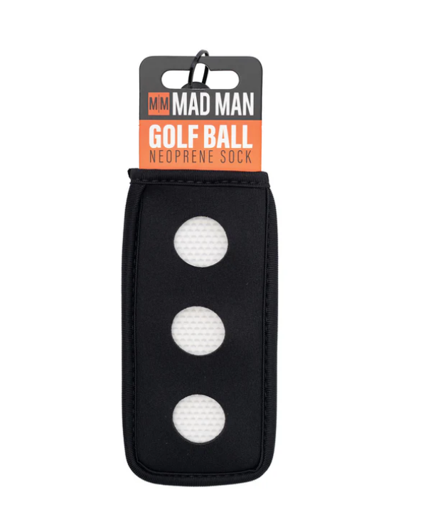 The Mad Man Golf Ball Neoprene Sock carry bag is made of soft neoprene cloth, which is light, flexible, and reusable. Clips to any bag.