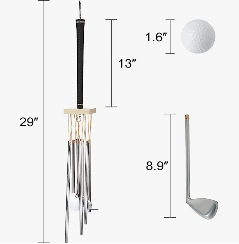 Add a touch of fun to your outdoor home décor this upcoming season with the Golfe Wind Chime by Gute! This adorable & unique wind chime is perfect for adding a calm ambiance to your yard or as a special gift for your loved one who enjoys to grip it and rip it on the golf course. Champions are won at practice, so enjoy your morning coffee on the patio while listening to the calm sounds of this golf wind chime. Go big or go home with your new favorite garden décor! The Golf Wind Chime has all of the essentials your backyard needs to start you're day off productively all while practicing showing off your love of golf. This wine chime is unlike the traditional wind chime, featuring a white golf ball in the center that acts as a wind chimer. The Wind Chime stands at 29" tall, the perfect size to see anywhere in your yard!