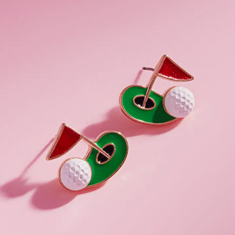 Golf Theme Design Enamel Post Earrings