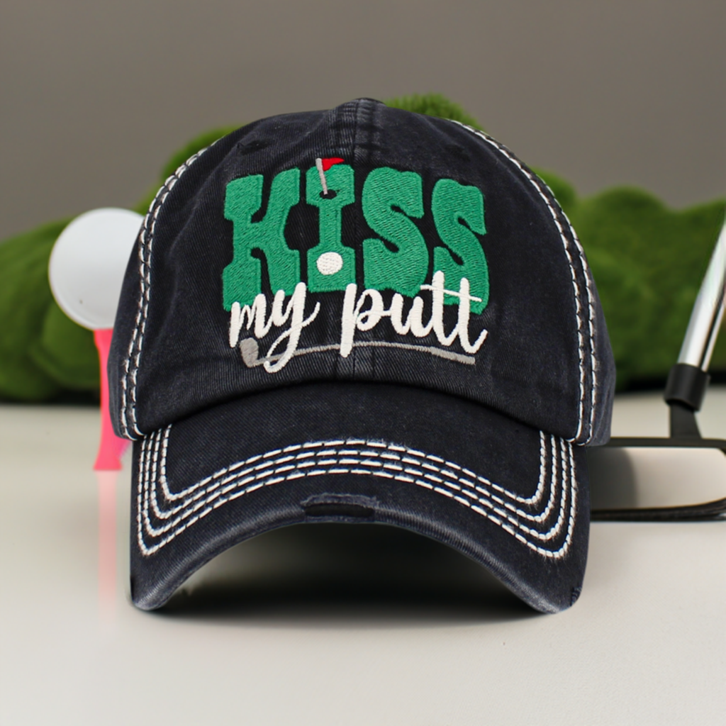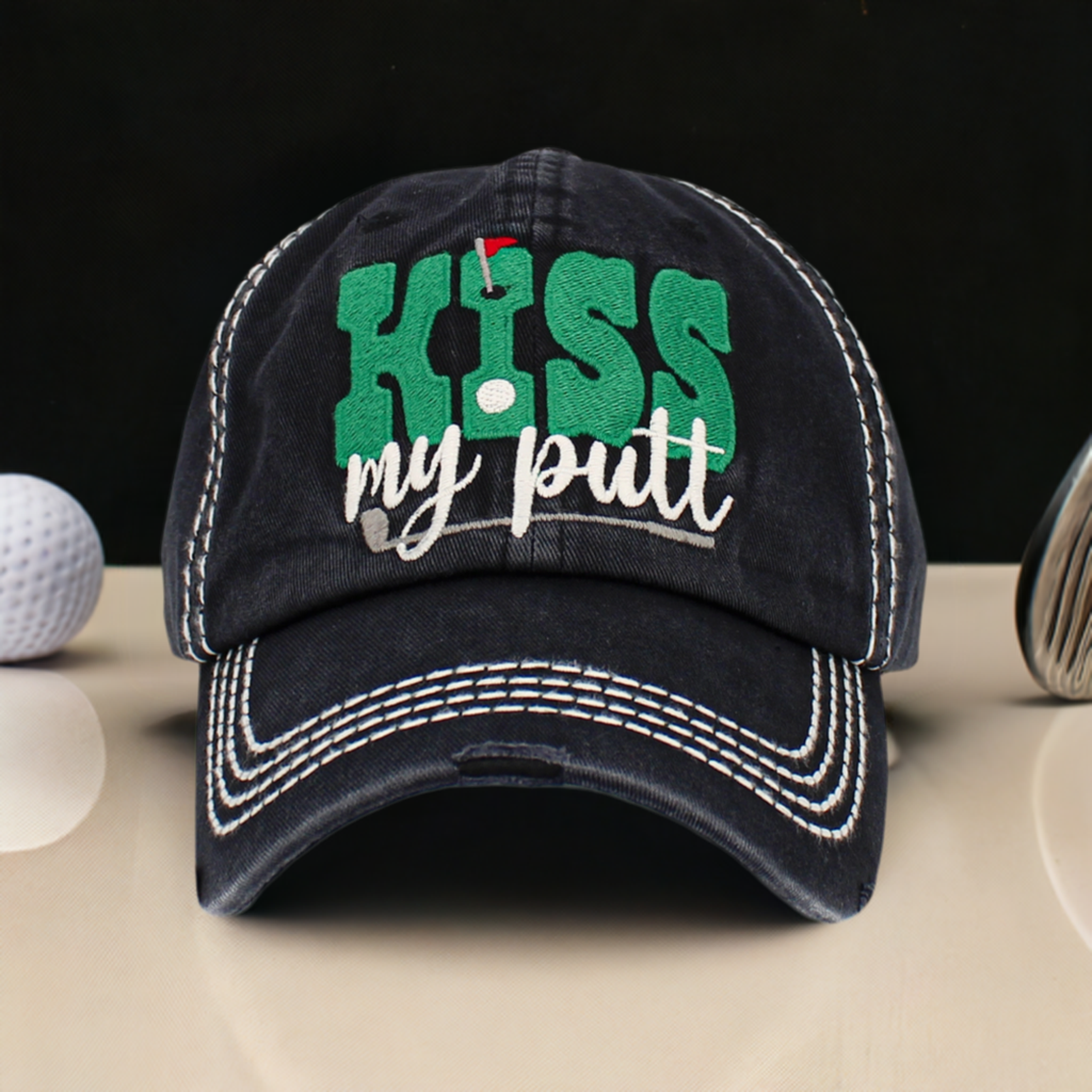 KBETHOS's Kiss My Putt Washed Vintage Ballcap is a unique accessory for women, embodying both style and comfort. Perfect for casual wear or your next golf game, this cap embodies our commitment to quality and style.