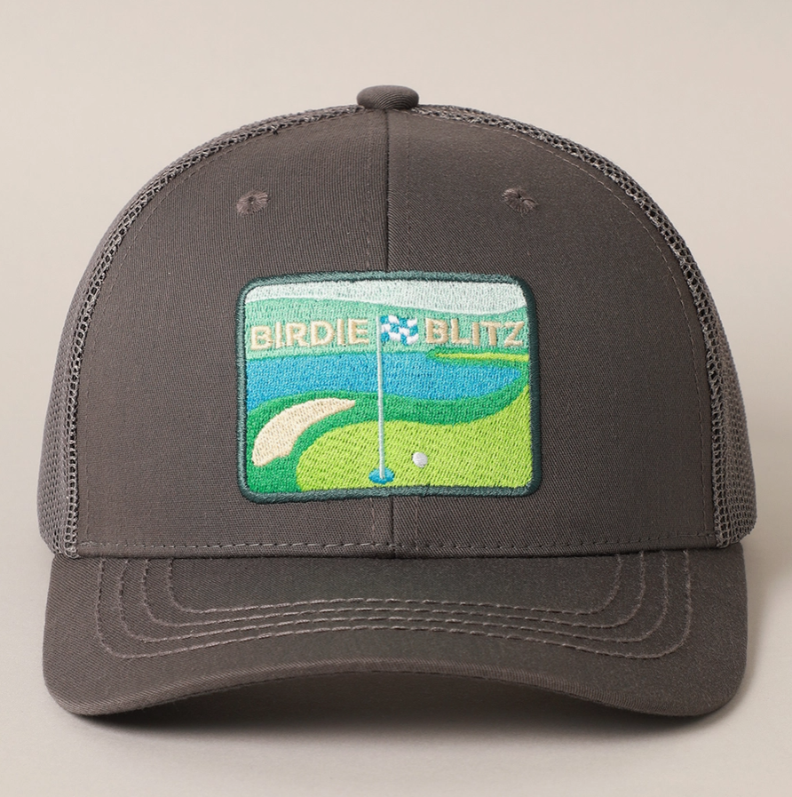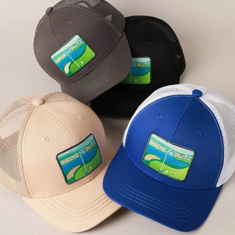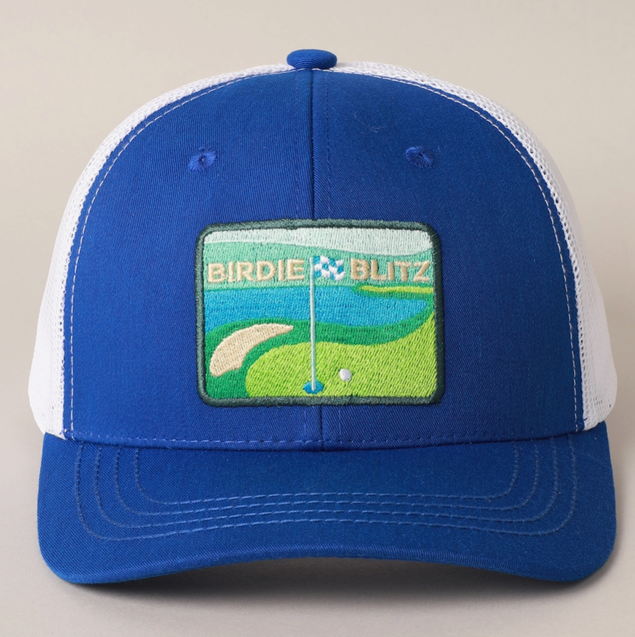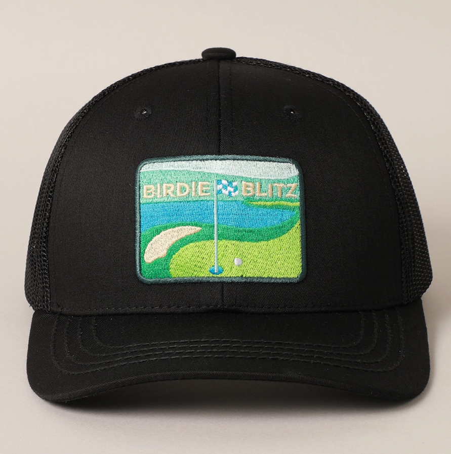 Men's Golf Patch Embroidered Baseball Cap with Meshed Back - Size: One Size Fits All (Adjustable Snap Closure Attached) - Perfect for Spring/Summer Vacation Vibe - Birdie Blitz Golf-Related Patch Design