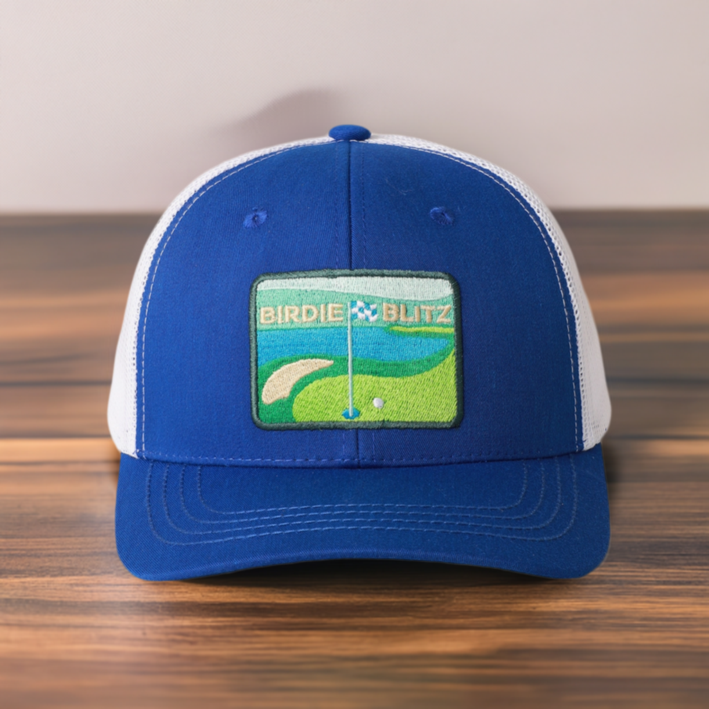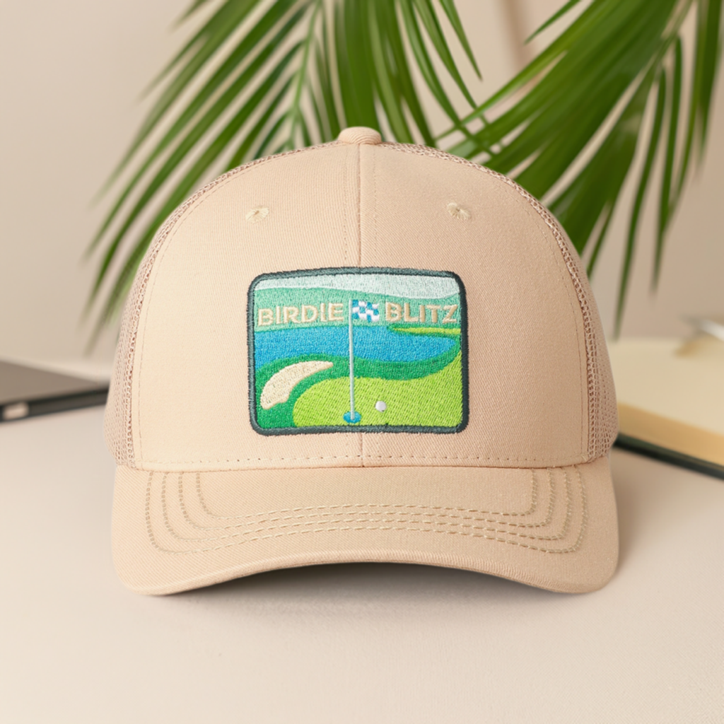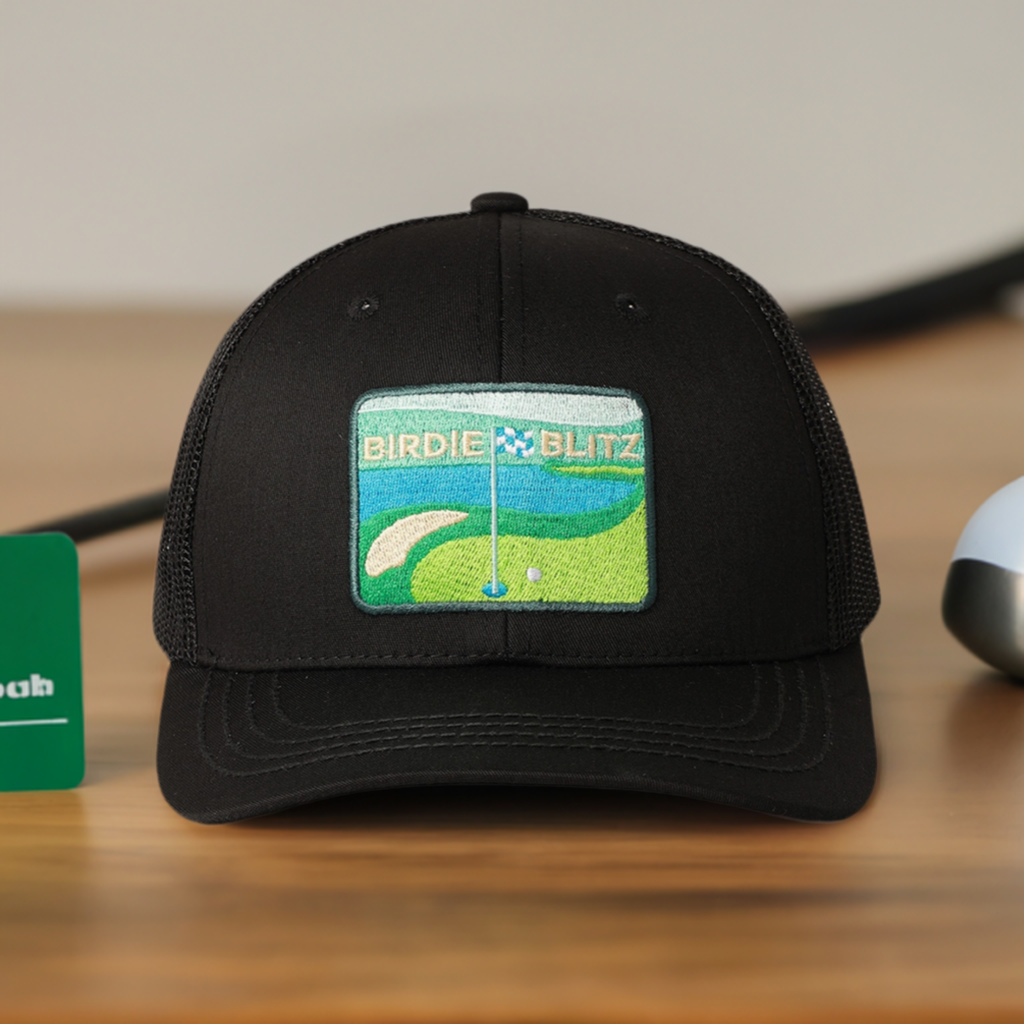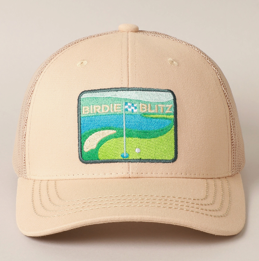 Men's Golf Patch Embroidered Baseball Cap with Meshed Back - Size: One Size Fits All (Adjustable Snap Closure Attached) - Perfect for Spring/Summer Vacation Vibe - Birdie Blitz Golf-Related Patch Design