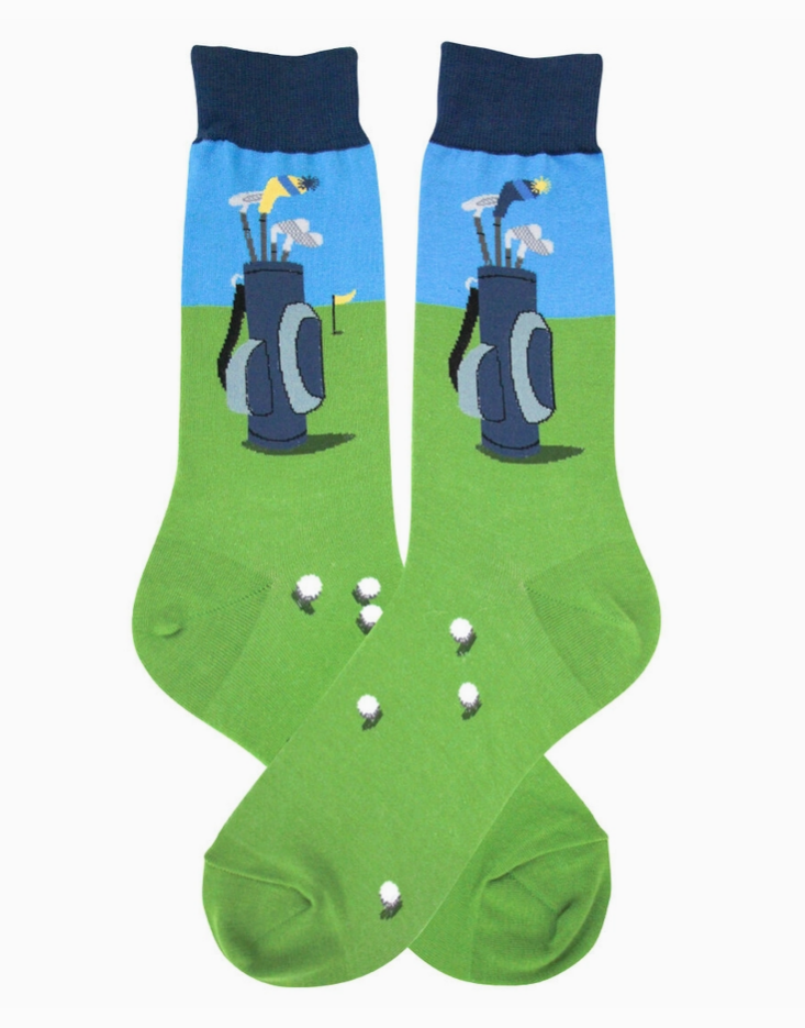 You can never have too many golf socks and these sporty socks will be your favorites when worn next time you play. The golf bag and golf balls adds color and fun to your golfing attire. No matter how well you play, you will at least look great!