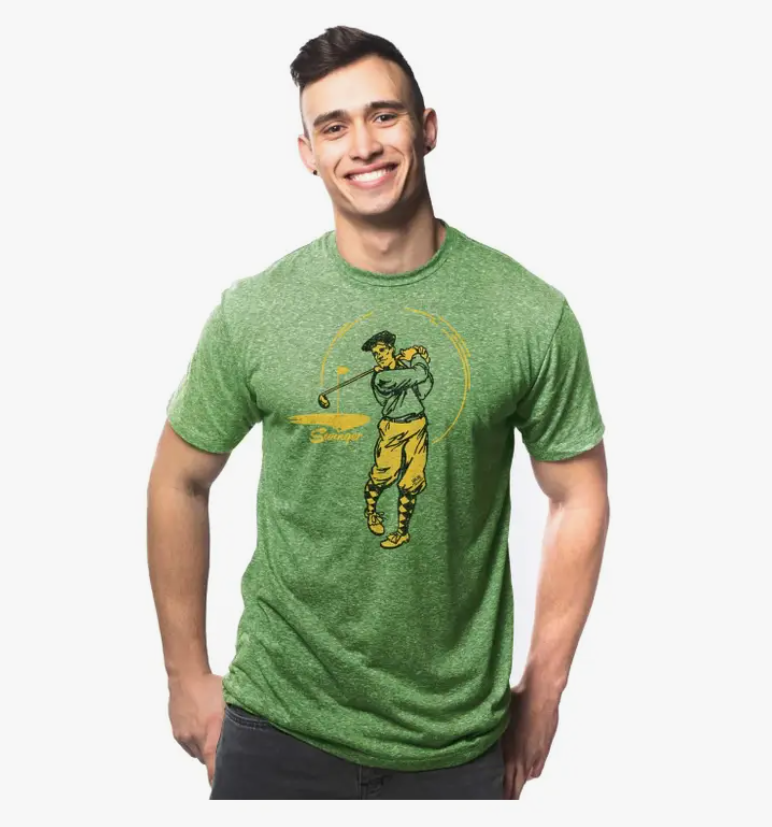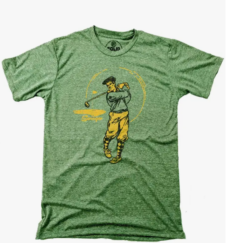 Maybe you're an avid golfer, or maybe you fulfill your swinging desires in other ways...Either way, this cool golfing graphic tee will add some extra flavor to your game. Keep people guessing as you delicately fondle the buttery softness of this vintage-style t-shirt. Garment/sourcing details: •buttery soft tri-blend of 50% cotton, 25% poly, 25% rayon for a blissful "worn-in" feel from the get-go. •sustainably printed in house with water-based, biodegradable inks •ethically sourced & custom cut & sewn in the USA. •slightly tailored w/ side seam construction for an athletic fit. •tagless inside neck label. Wash cool, no bleach, tumble dry.