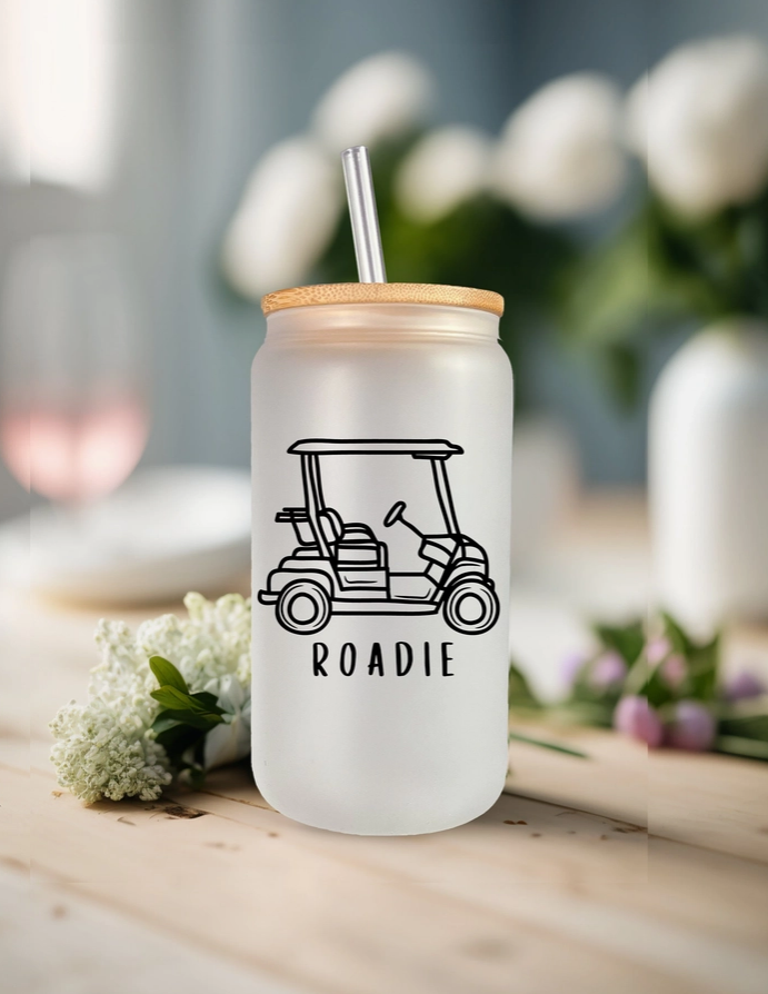 Roadie Golf Cart 16oz Beer Can Glass with Lid and Straw