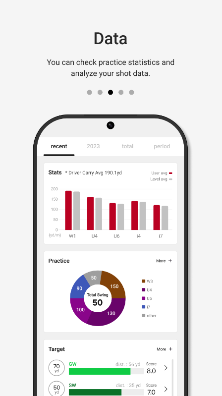 'MySwingCaddie' App, working together with the SC300 & SC300i & SC4, can analyze your shot and provide statistics from collected data.