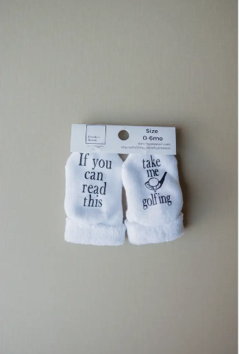 These socks are a great add on for your gifts! They make a great baby shower gift extra! Available in 0-6 month, 6-18 month sizes.