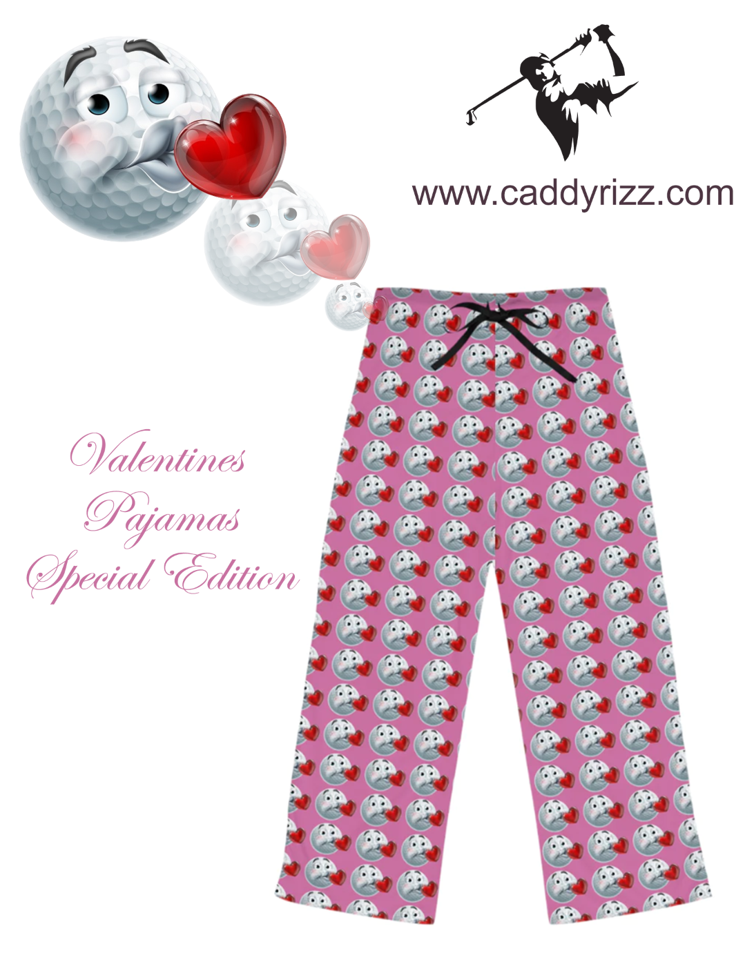 Caddyrizz's Valentines Special Edition Pajama Pants are incredibly comfortable and the perfect pajamas to go to bed or just lounge around, but stylish enough to wear to the Grocery Store and let everyone know you got some serious Golf Rizz.